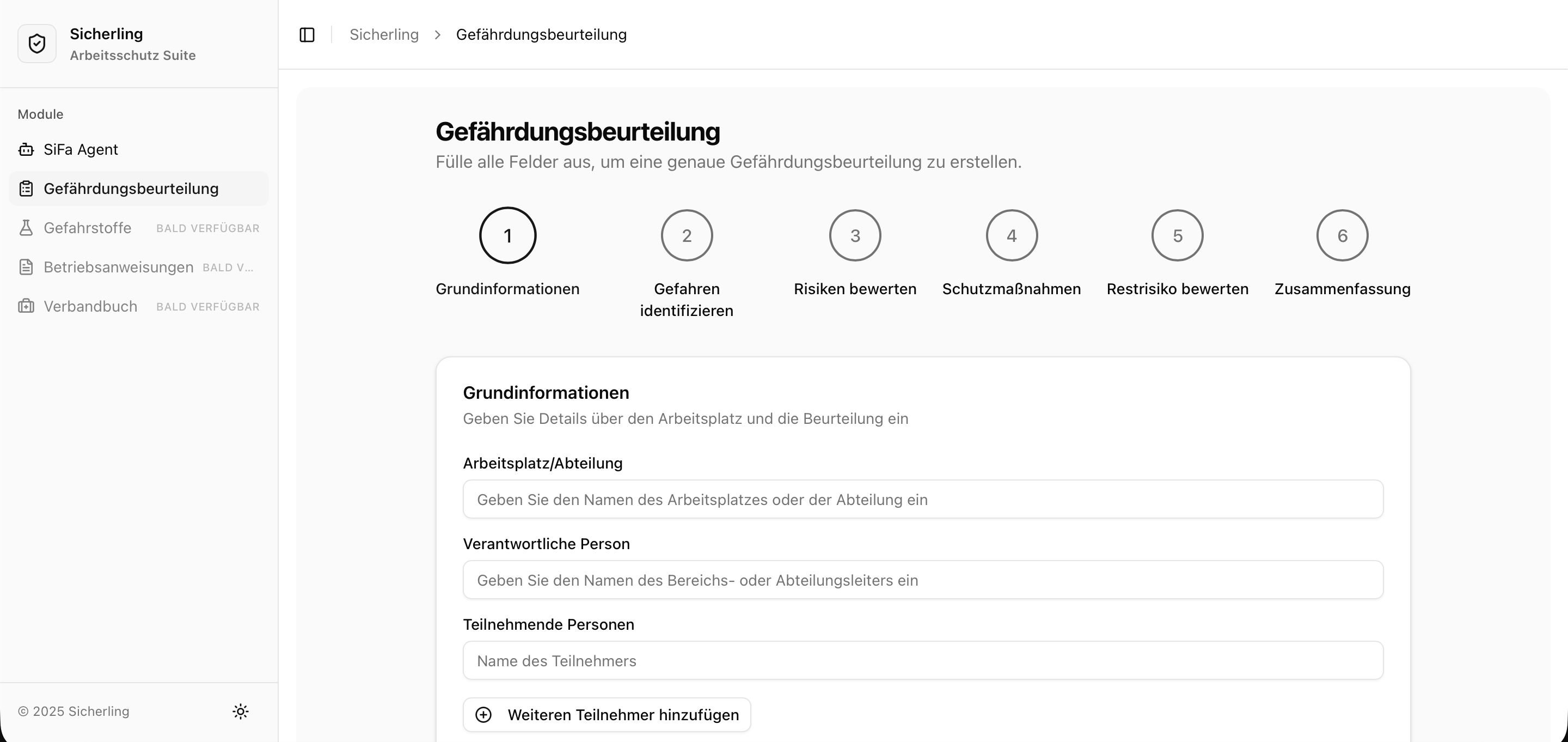 Erstelle Gefährdungsbeurteilungen auf Basis aktueller Regelwerke und spare dir stundenlange Dokumentenarbeit.